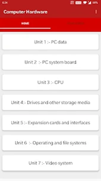 Dans cette application, nous avons inclus un cours complet et détaillé sur les bases du matériel informatique. Le cours couvre tous les sujets importants et est très facile à comprendre. Le matériel a été organisé de manière très logique et facile à utiliser.
